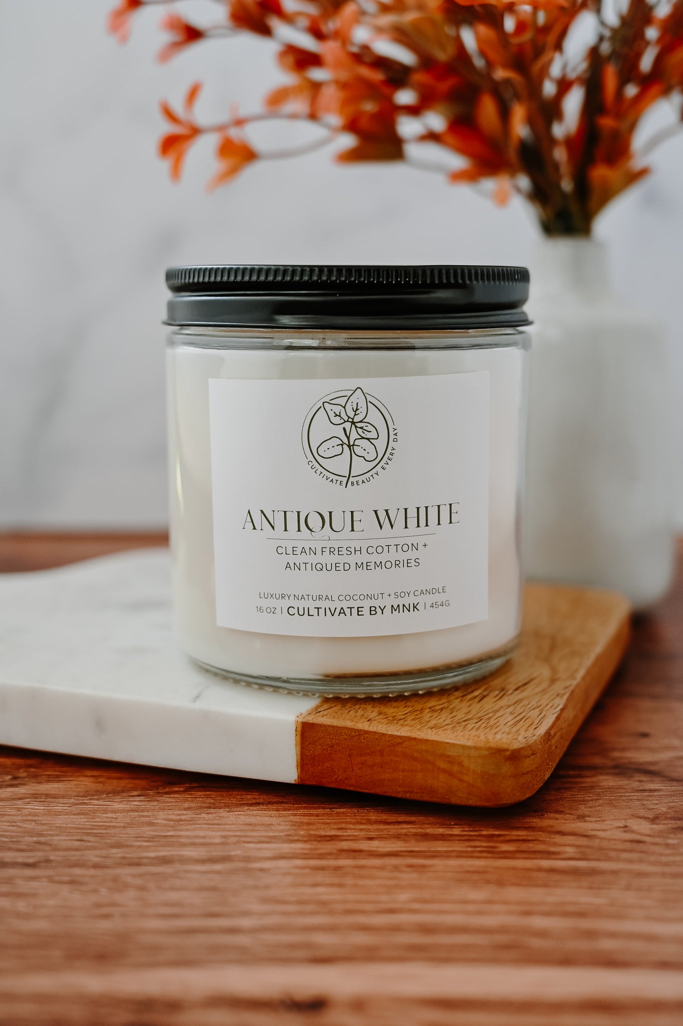 Imagine the chippy white paint on an old farmhouse, fresh breeze and laundry on the line with blue skies all day long.