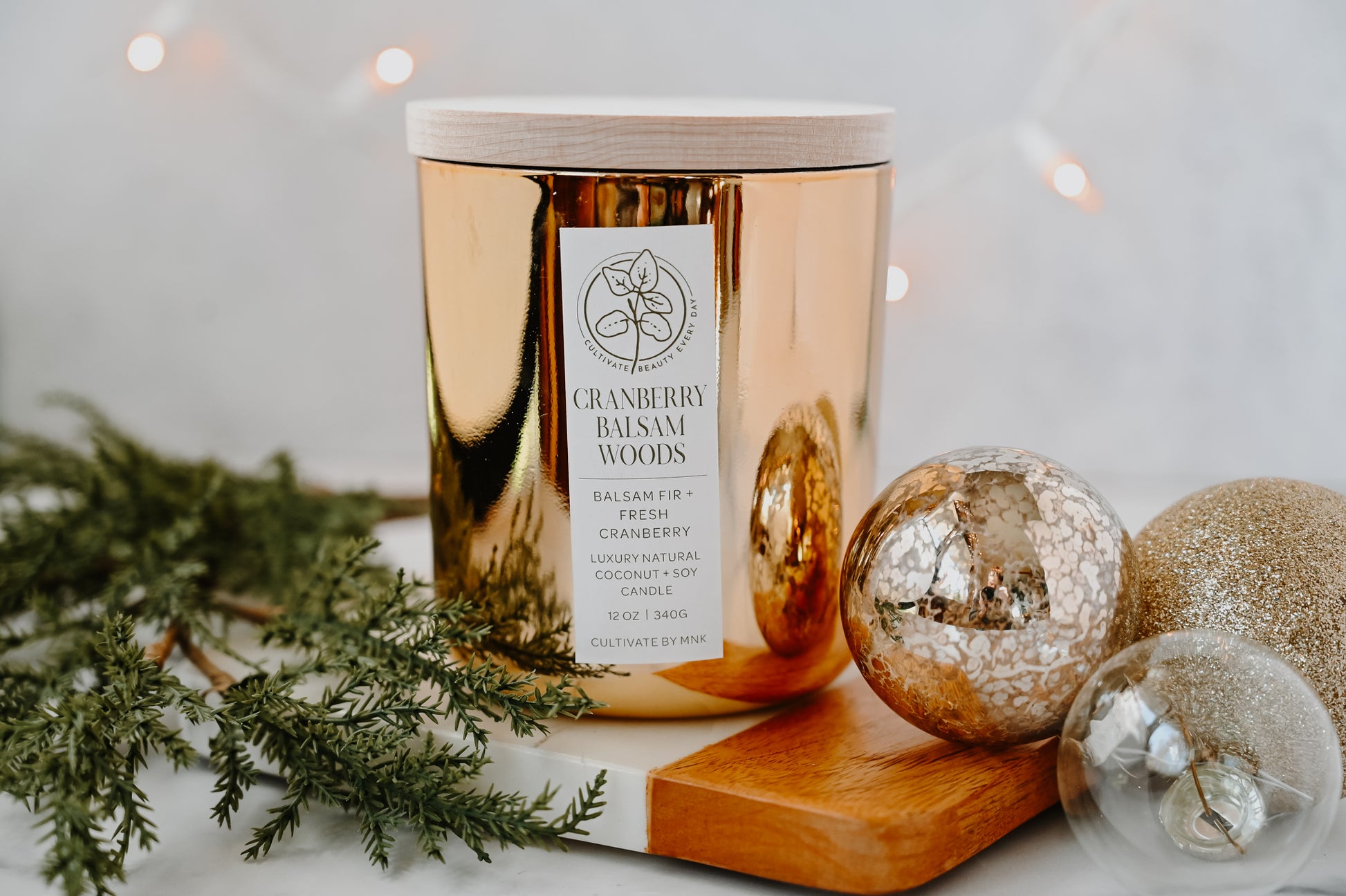 Cranberry, Fresh Balsam and Fir needle; surrounded by holiday spices and melodies.