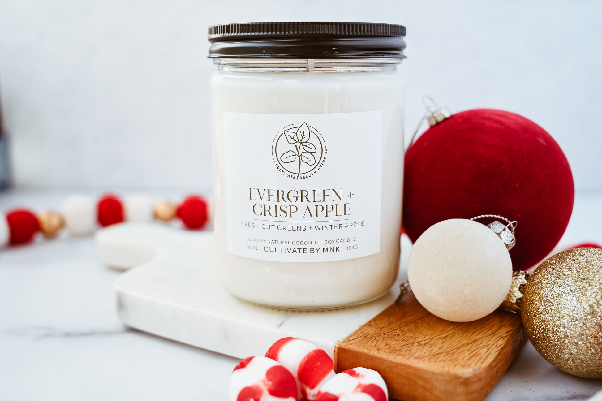 Evergreen + Apple is a wintry blend of fresh balsam, fir and pine and crisp winter apple. This blend brings a clean and inviting aroma to the space without overwhelming it.
