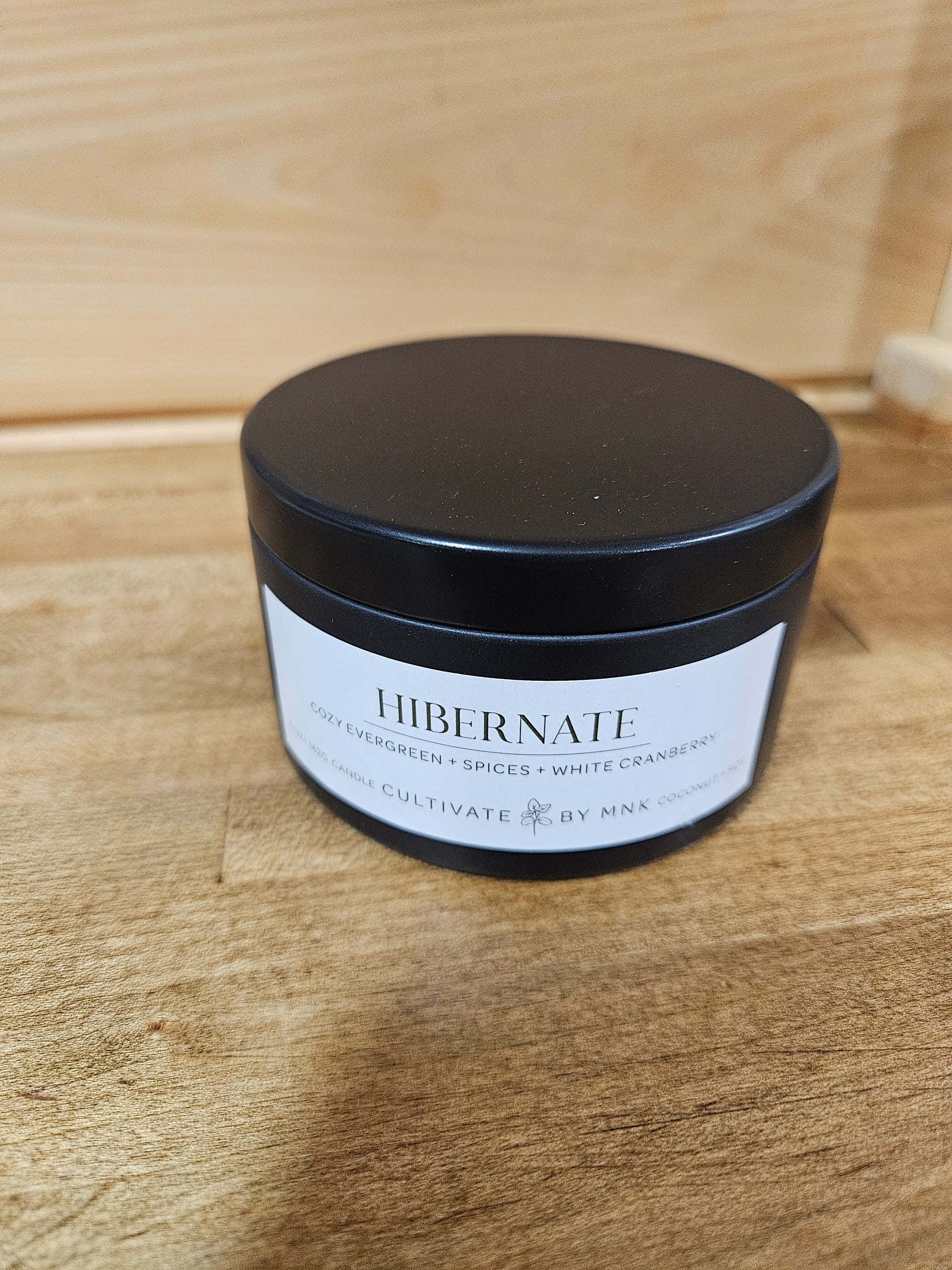 Hibernate is a blend of orange peel, cranberry, spices and evergreen. It's twinkling lights, winter nights and cozy warm spice all in one.