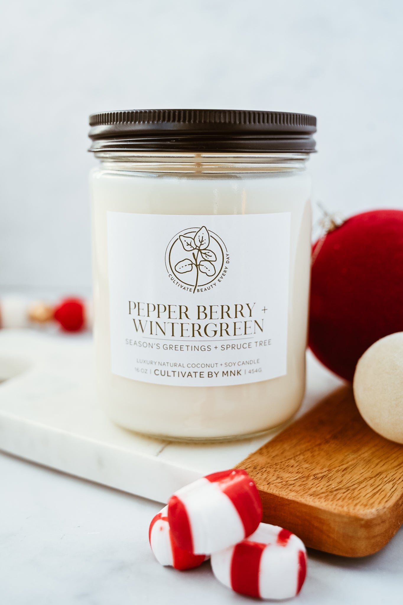 Pepperberry + Wintergreen is a bright berry, wintergreen, citrus blend with herbaceous herbs and pines. Perfect for brightening up a space, inviting the invigorating citrus balance with the seasonal wintergreen aroma.