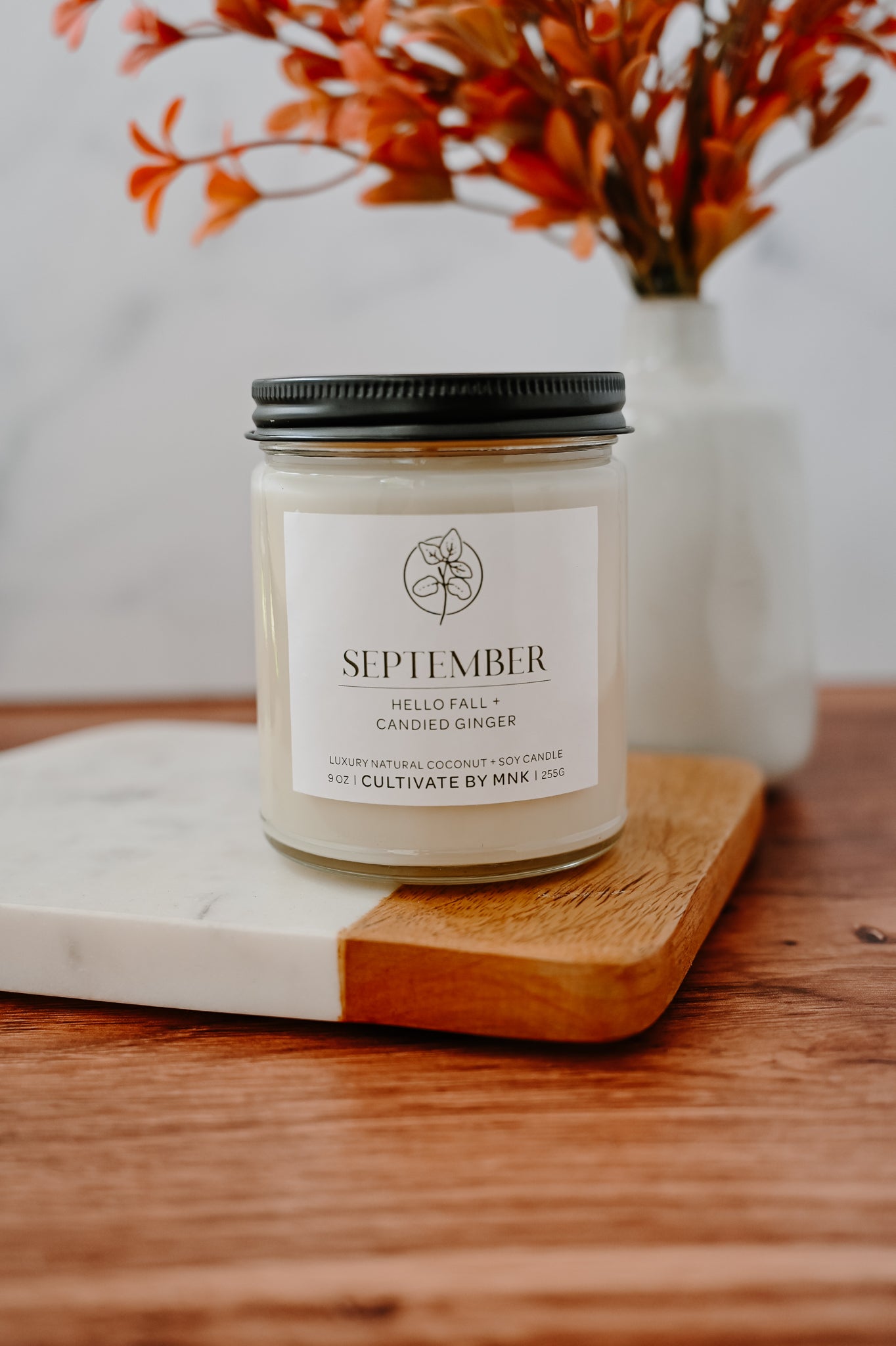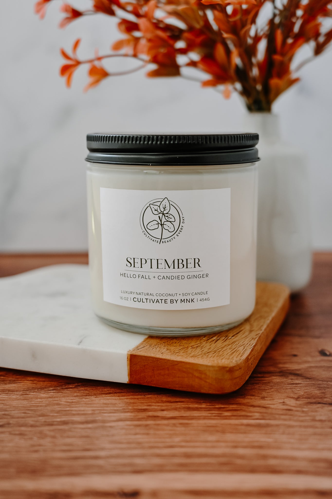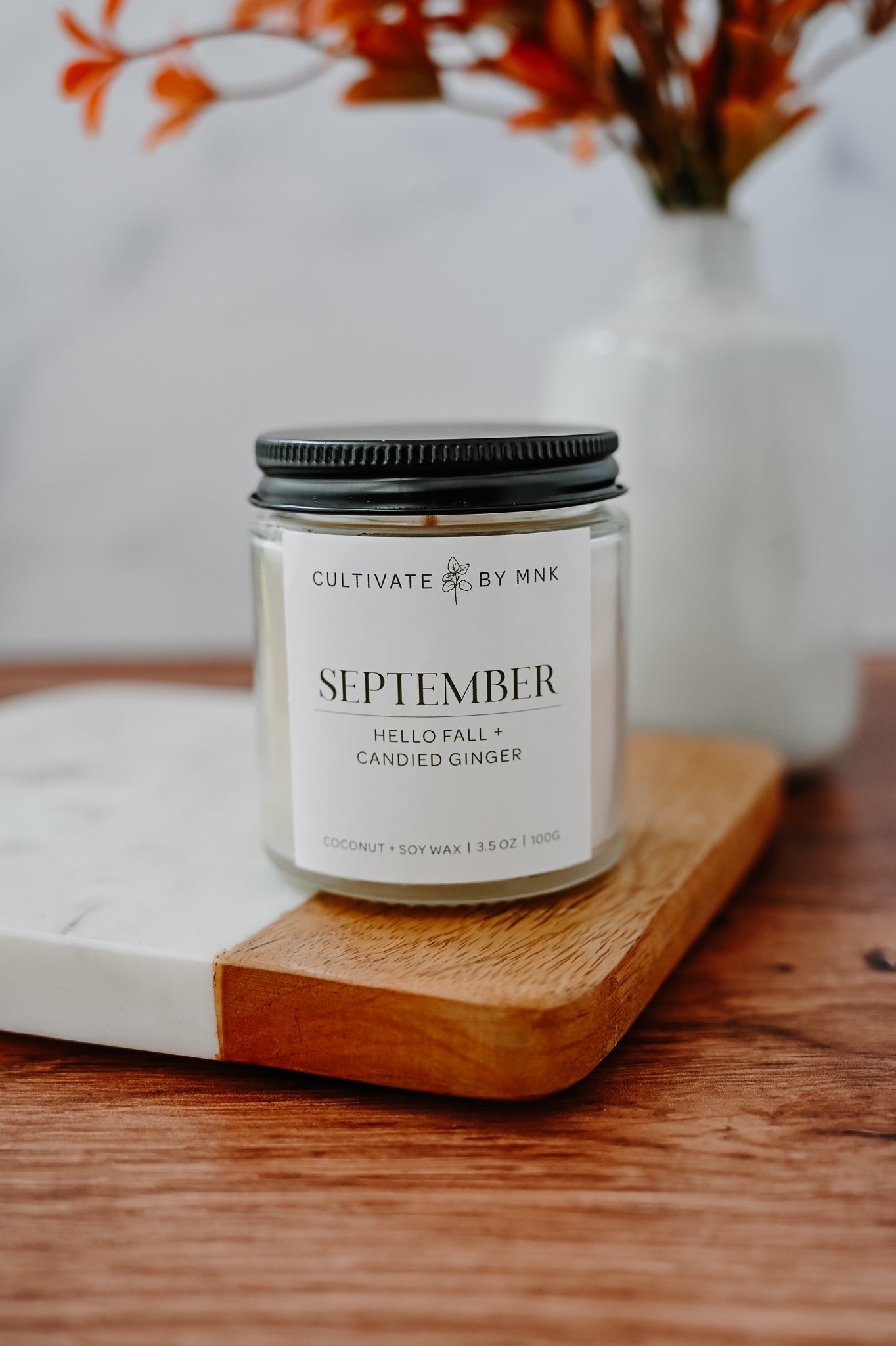 September is always the gateway to fall. Wanting to capture what I feel embodies in a candle is exactly what this scent does for me. With notes of Crisp Ginger, Apples, Citrus. And spices of nutmeg, cinnamon bark and woods, you can’t go wrong with this transitional scent. Bestseller every Fall!